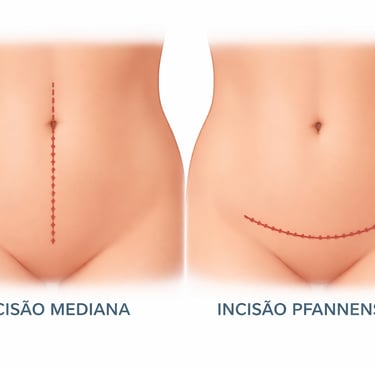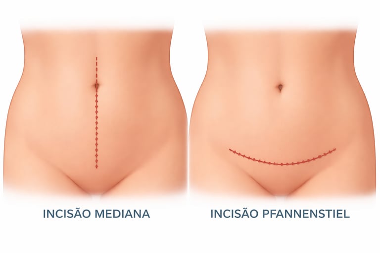 Corte phannestiel (tipo “cesárea”): fica logo acima do osso do púbis. É uma incisão com boa avaliação de toda a pelve, podendo ser usada em varias oportunidades.
